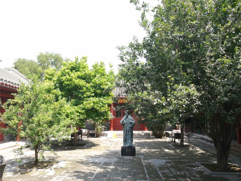 宽敞的庭院里,散布着几处方桌和环绕方桌的棕色藤椅。也许在当年的盛夏,那是齐白石先生招待客人的地方。谈笑有鸿儒,往来无白丁,一壶清茶,几许微风,说尽天下兴废事。