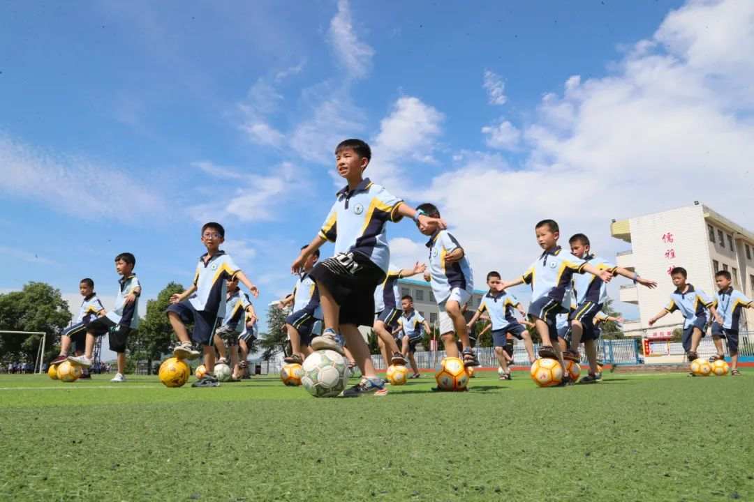 6月24日,湖南省永州市新田县龙泉四小学生在课后练习踢足球。刘贵雄 摄