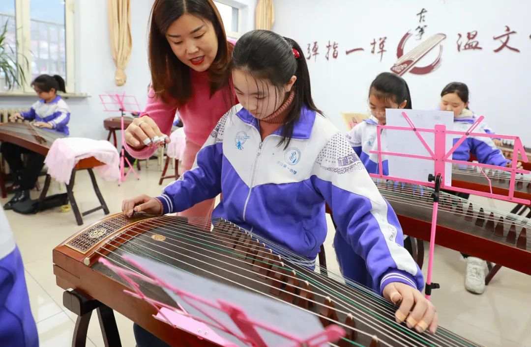 1月7日,河北省承德市围场满族蒙古族自治县第一小学古筝教师利用课后服务时间指导学生练习。资料图片