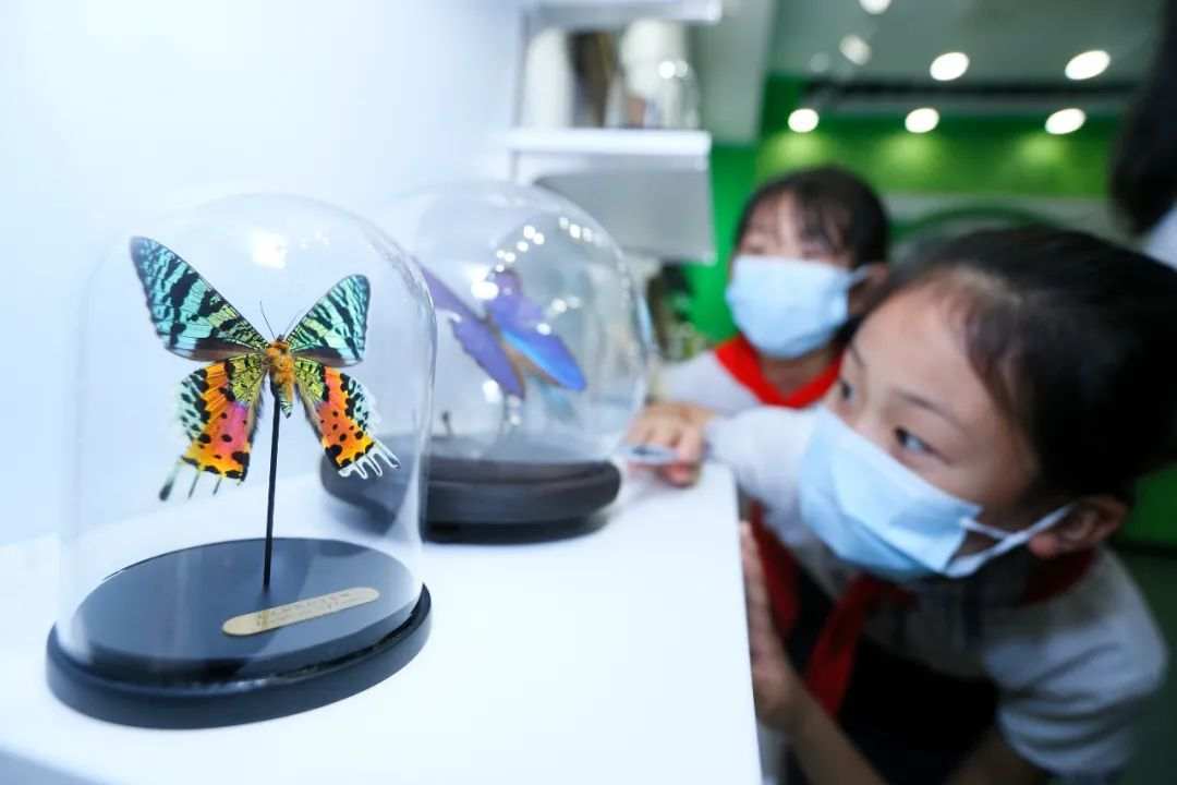 7月1日,山东省青岛市即墨区龙泉街道莲花山小学学生在中国农科院特种作物研究中心青岛试验基地田园昆虫科普馆学习生物知识。梁孝鹏 摄