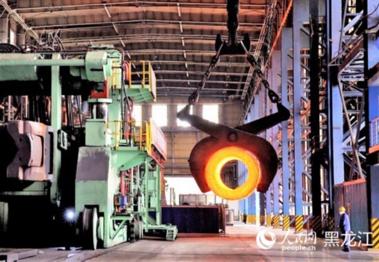 中国一重集团水压机锻造厂生产车间。人民网 张哲鑫摄