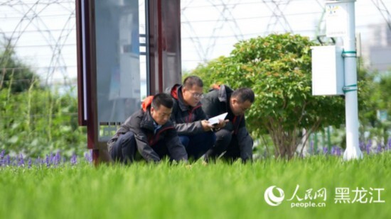 建三江国家农业科技园区科研人员在做田间检测。人民网 苏靖刚摄