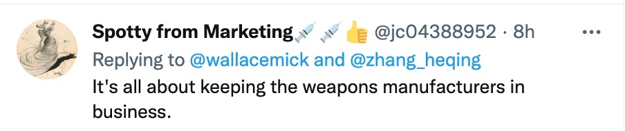还有网友分析说:“(炒作威胁论)都是为了帮军火商做生意。”