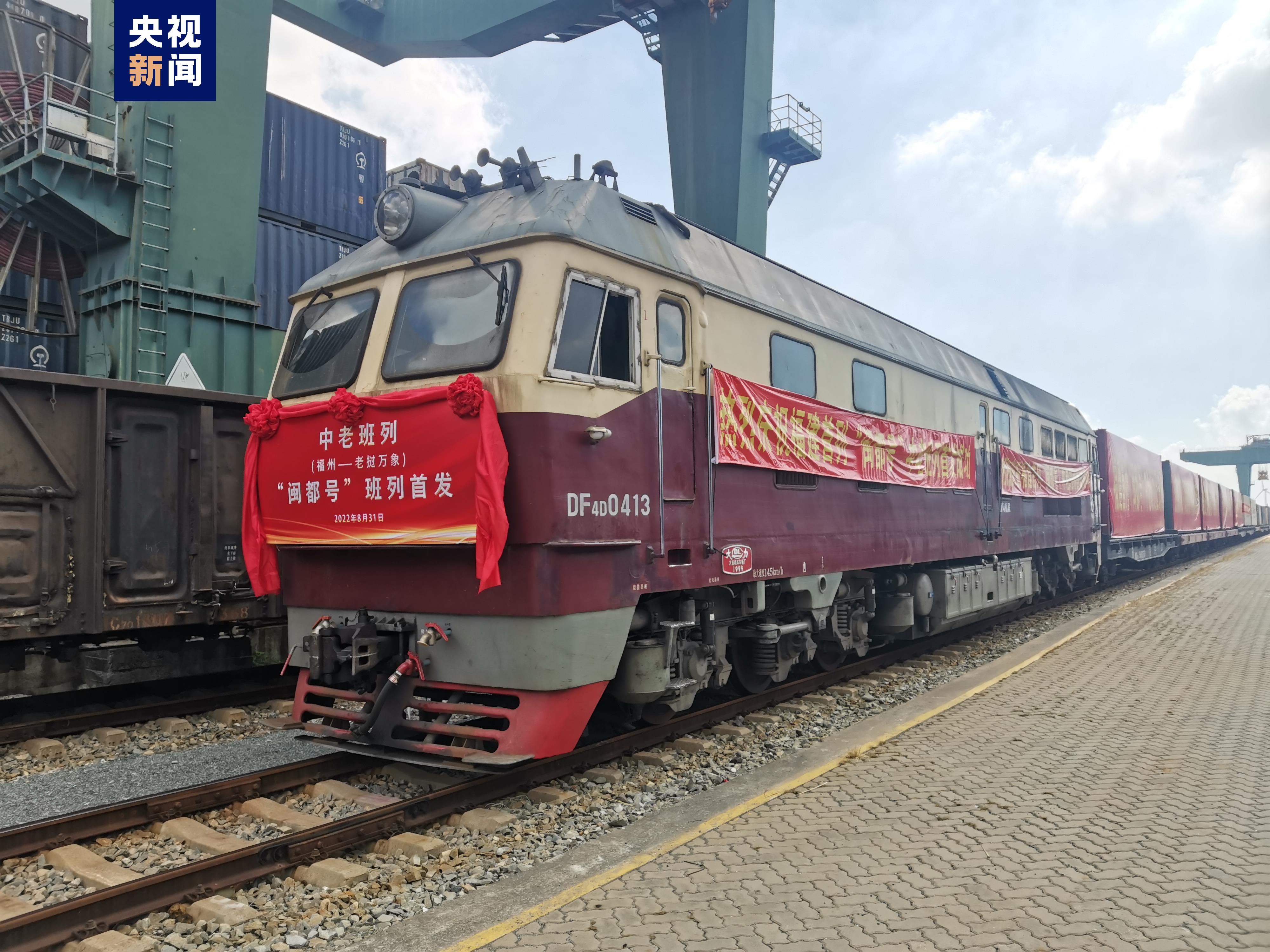 8月31日上午,福建省开行首趟中老铁路国际货运列车。福建首列中老铁路国际货运列车装载有22个货柜,包含茶叶、化肥原材料等货物,货重506.9吨,货值1142万元。这趟列车从福建福州江阴港站驶出,将途经昆明,从磨憨铁路口岸出境,沿中老铁路抵达终点站老挝万象。全程3510公里,运行时间约5至7天,将比海运缩短3、4天时间。