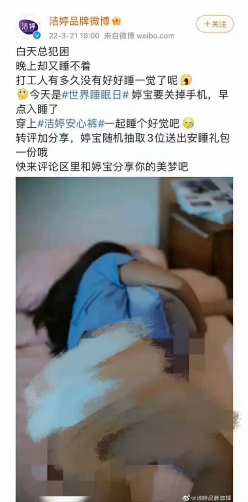 3月21日,@洁婷品牌微博 发布了一条产品宣传,并将一位女性身着安心裤的照片用作广告。展示产品本无不妥,但洁婷的拍摄角度引起了部分网友的质疑,认为其有“偷拍”、“擦边球”之嫌。3月25日,针对洁婷安心裤广告被指侮辱女性一事,洁婷官微发布致歉信称,“此次事件反映出我们的内容及审核流程存在漏洞,我们已启动内部程序,优化管理”。