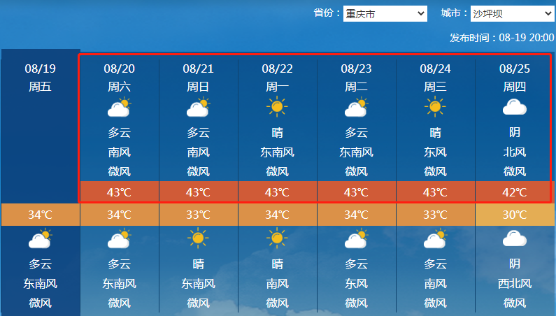 不过也有例外。目前来看,热度最高的重庆未来6天最高气温仍将维持在40℃以上。