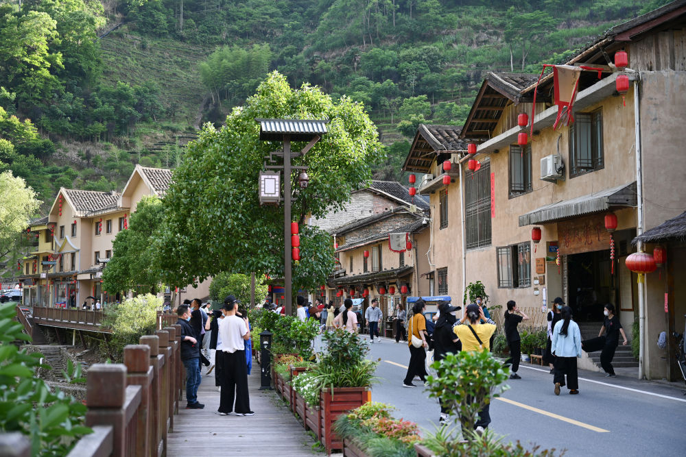 ↑2022年6月22日,游客在下党村参观游览。2021年,下党村实现旅游综合收入约5000万元。