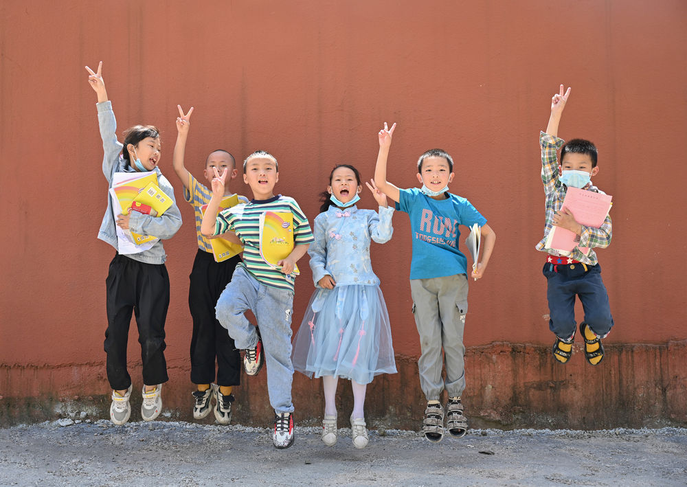 ↑这是2022年6月24日拍摄的下党村希望学校的小学四年级学生。下党村希望学校集合了幼儿园、小学和初中。