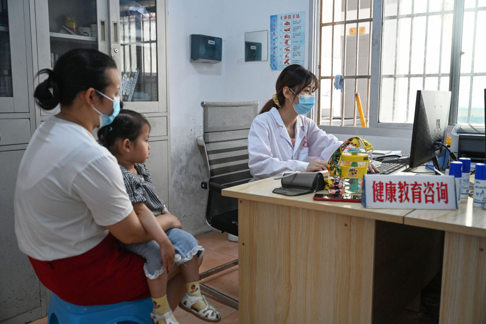 ↑2022年6月24日,村民在位于下党村的乡镇卫生院进行健康咨询。