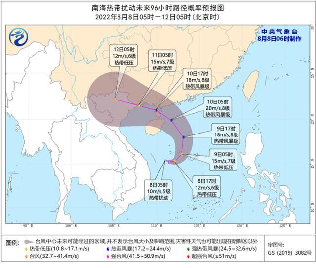 今晨5时,有一热带扰动位于西沙永兴岛西南方210公里的海面上,预计其将于今天加强为热带低压,未来两天内加强为今年第7号台风。该扰动将向偏北方向移动,趋向海南岛北部至广东西部一带,强度可达热带风暴级。