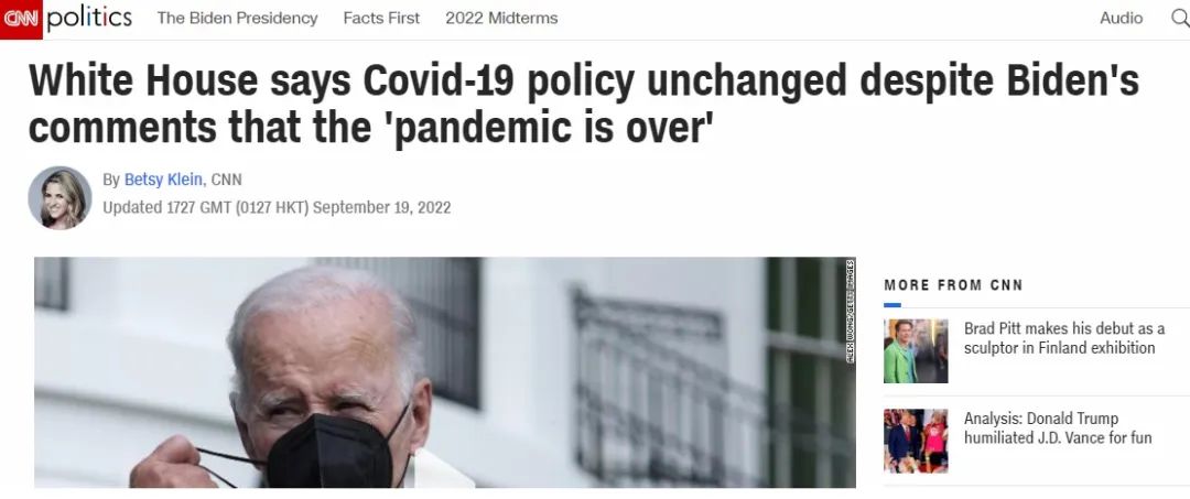 尽管拜登说“大流行已结束”,但白宫表示抗疫政策没变。图片来源:CNN报道截图