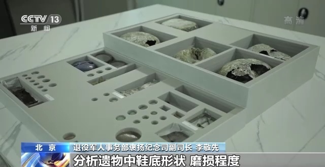 退役军人事务部褒扬纪念司副司长 李敬先:在整理遗物过程中分析、推测遗物主人的生活习惯、爱好等,重现志愿军战士战斗生活场面和战争场景,分析遗物中鞋底形状及磨损程度,还原战场的残酷、战士的辛苦及后勤补给的艰难情况等。