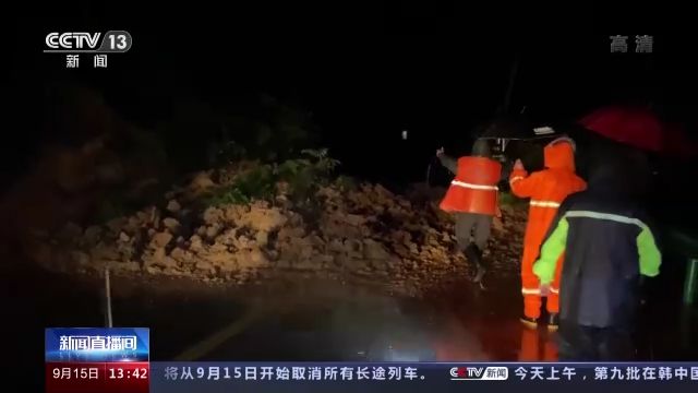 9月14日晚6时30分,由于山洪冲刷,宁波市大堰镇白竹线至董家岙公路部分路段出现塌方。当地组织救援力量抢修道路。