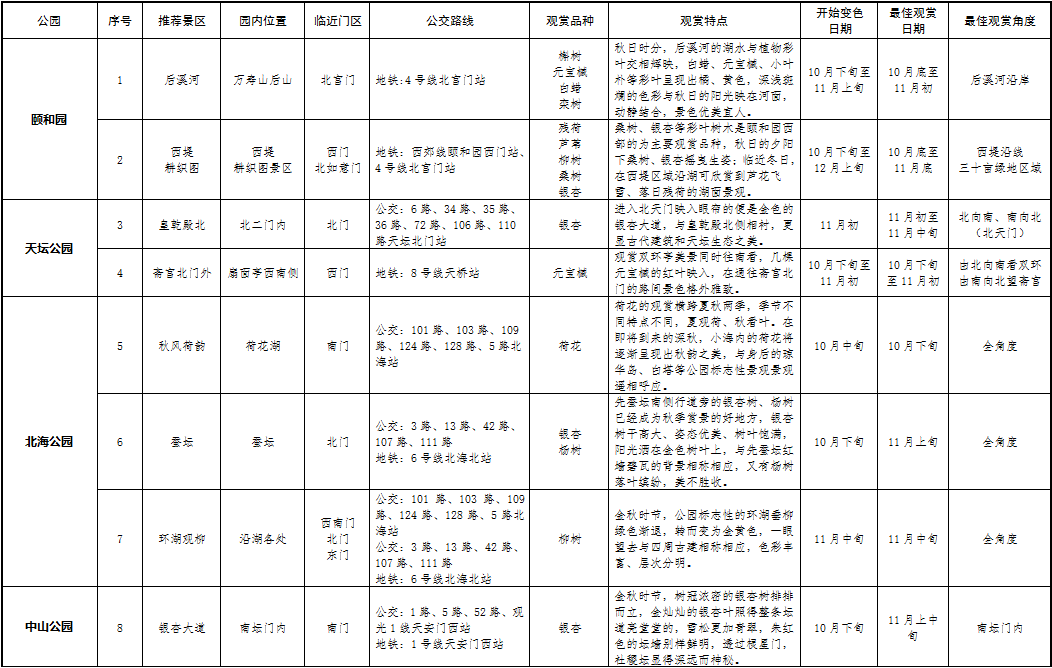 2022年北京市属公园彩叶观赏指南