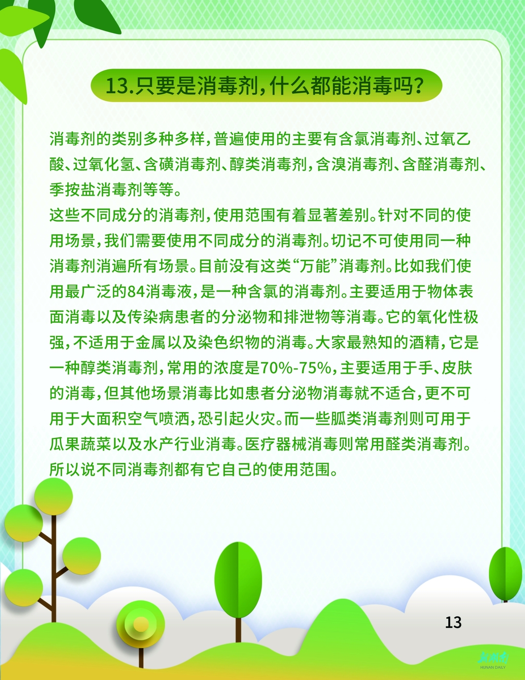 ·切记不可使用同一种消毒剂消遍所有场景,目前没有这类“万能”消毒剂。