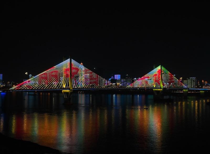 2022年10月1日,武汉,两江四岸上演“奋进新征程 建功新时代”国庆特辑灯光秀,以满城璀璨献礼新中国73岁华诞。