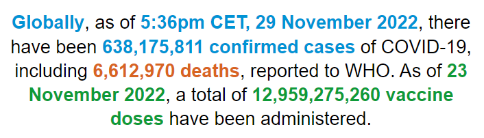 世卫组织:全球累计新冠肺炎确诊病例超6.3817亿例
