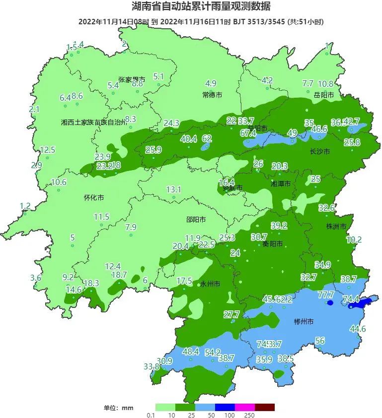 湖南省自动站累计雨量观测数据(2022年11月14日08时至11月16日11时)