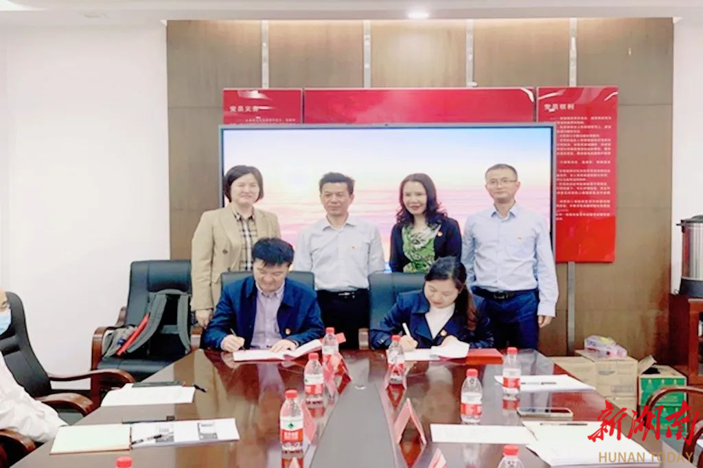 天心区文化旅游体育局党组书记、局长张灵与长沙市口腔医院友谊路院第五党支部书记廖光天共同签署了党建共建项目书