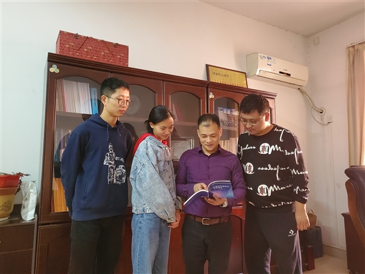 丁发兴(右二)和团队成员探讨损伤比理论相关内容。受访者 供图