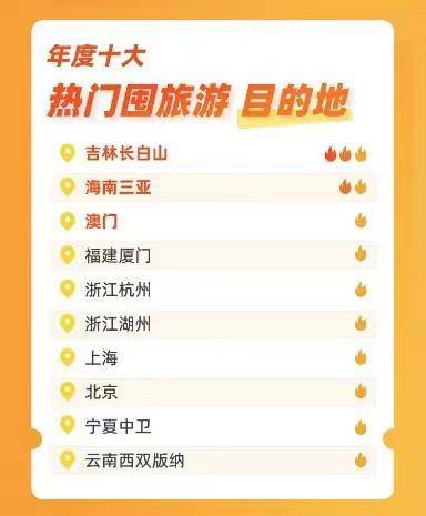 数据显示,露营、冰雪游、体育游、温泉、房车、旅拍、海岛、自驾、乐园、航天游,成为2022年度囤旅游十大热门玩法。