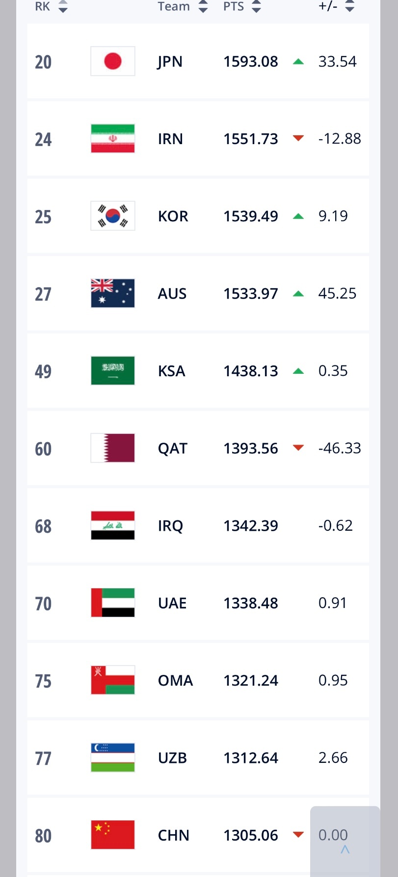 北京时间22日,国际足联更新本年度最后一期世界排名,巴西队依旧高居榜首,刚刚夺得世界杯冠军的阿根廷队排名升至第二,法国排名第三。闯入四强的摩洛哥队飙升至第十一。国足排名比去年底下降六位,来到第八十名,在亚足联则位居第十一名。