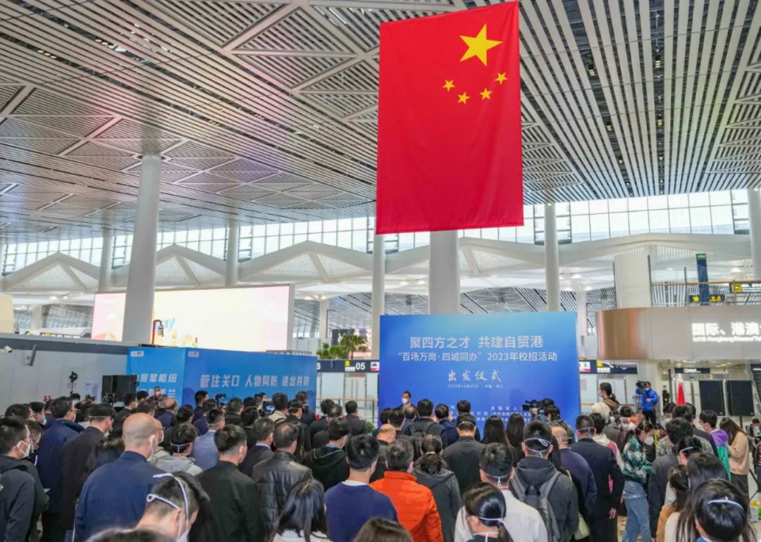 (12月20日,海南“百场万岗·四城同办”2023年校招活动出发仪式在海口市美兰机场举行。海南日报记者 陈元才 摄)
