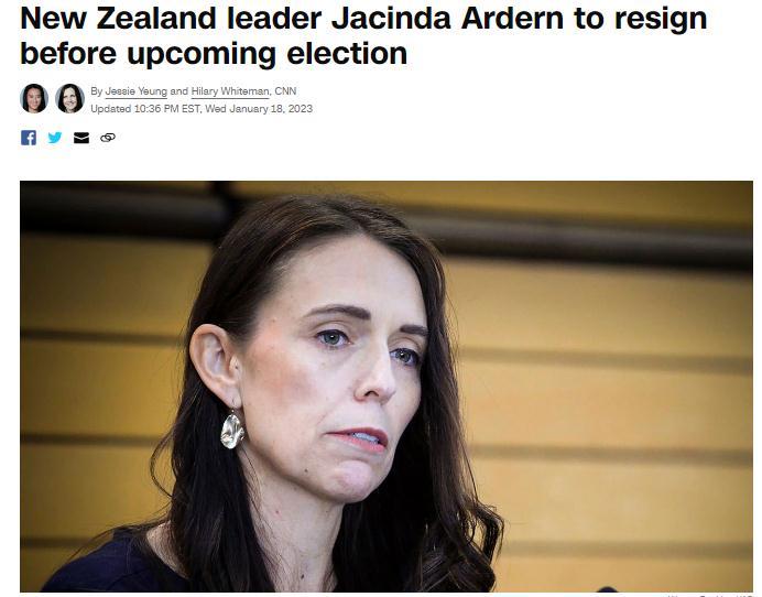 当地时间1月19日,新西兰总理阿德恩宣布辞职。图片来源:美国有线电视新闻网(CNN)报道截图