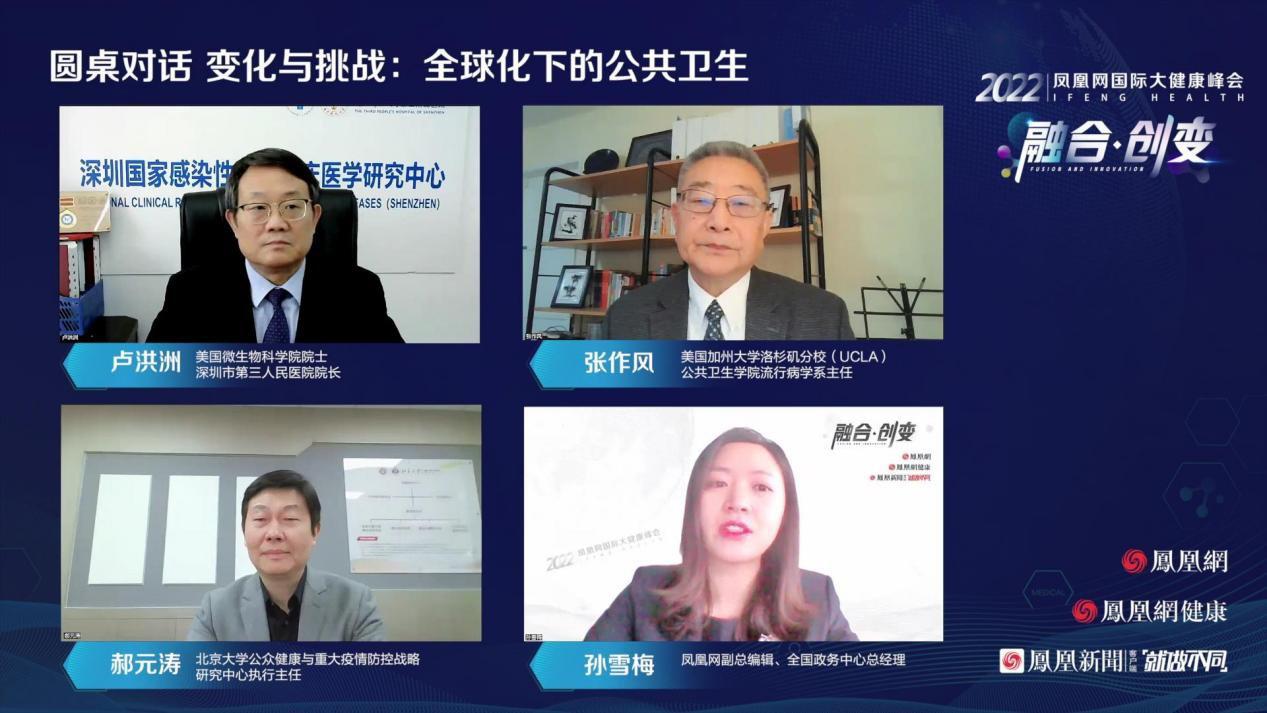 正确认识、安然度过新阶段,已成为全新课题。12月27日,由凤凰网主办、凤凰网健康承办的凤凰网2022国际大健康峰会在线上举办。在“变化与挑战:全球化下的公共卫生”圆桌论坛上,邀请美国微生物科学院院士、深圳市第三人民医院院长卢洪洲,美国加州大学洛杉矶分校(UCLA)公共卫生学院流行病学系主任张作风,北京大学公众健康与重大疫情防控战略研究中心执行主任郝元涛,与主持人凤凰网副总编辑、全国政务总经理孙雪梅一起拨见恐慌与忧虑背后的理性,并结合国内外放开初期的经验教训,探求新阶段疫情防控新路径。