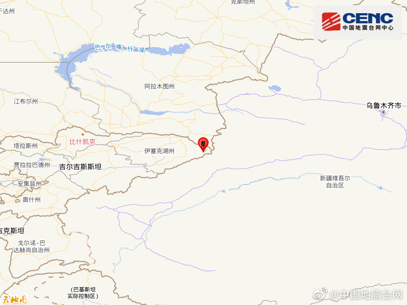 中国地震台网正式测定:02月27日05时42分在吉尔吉斯斯坦(北纬42.08度,东经79.83度)发生4.5级地震,震源深度10千米。