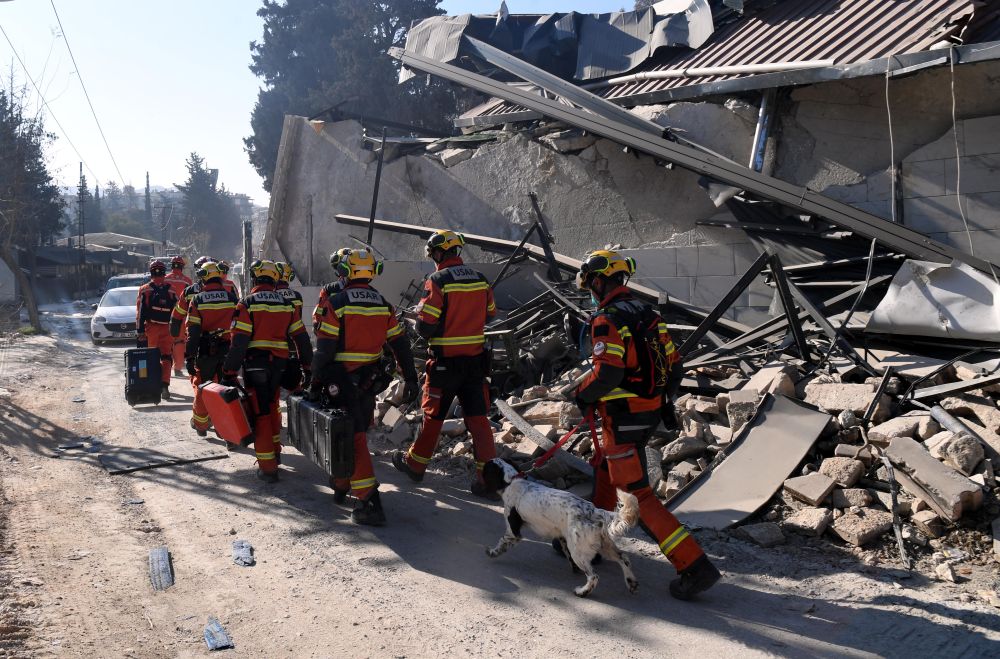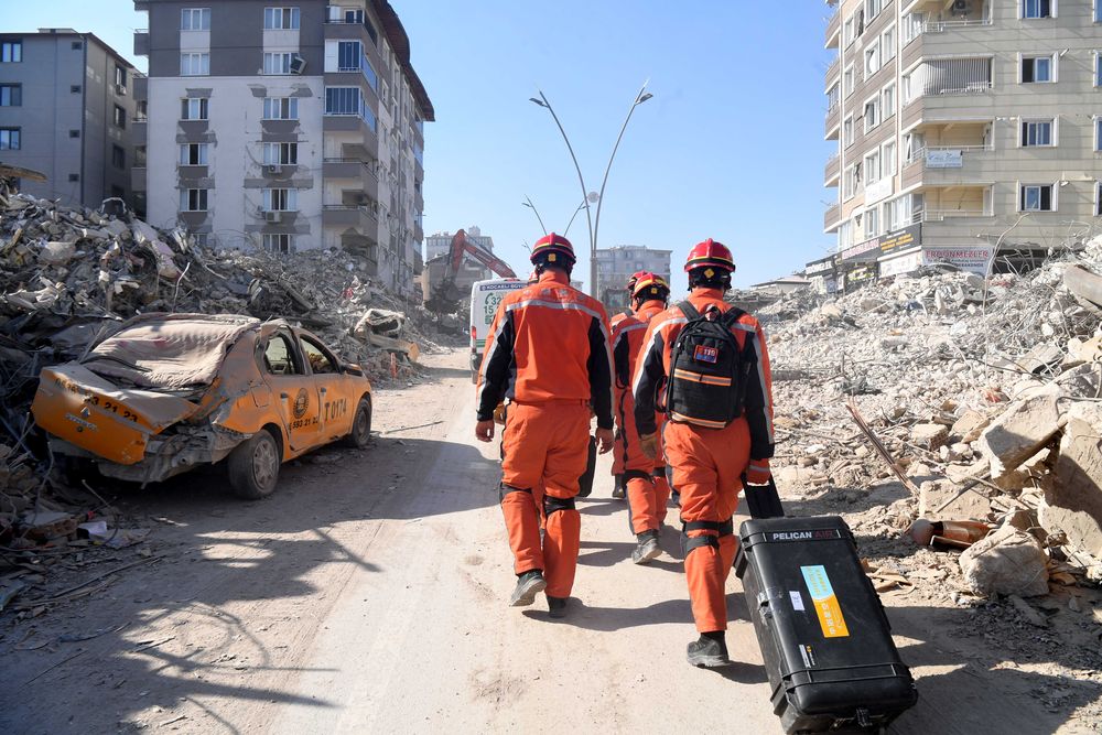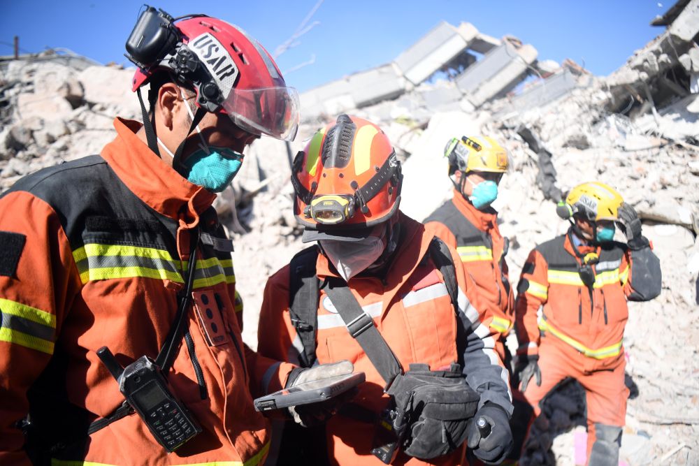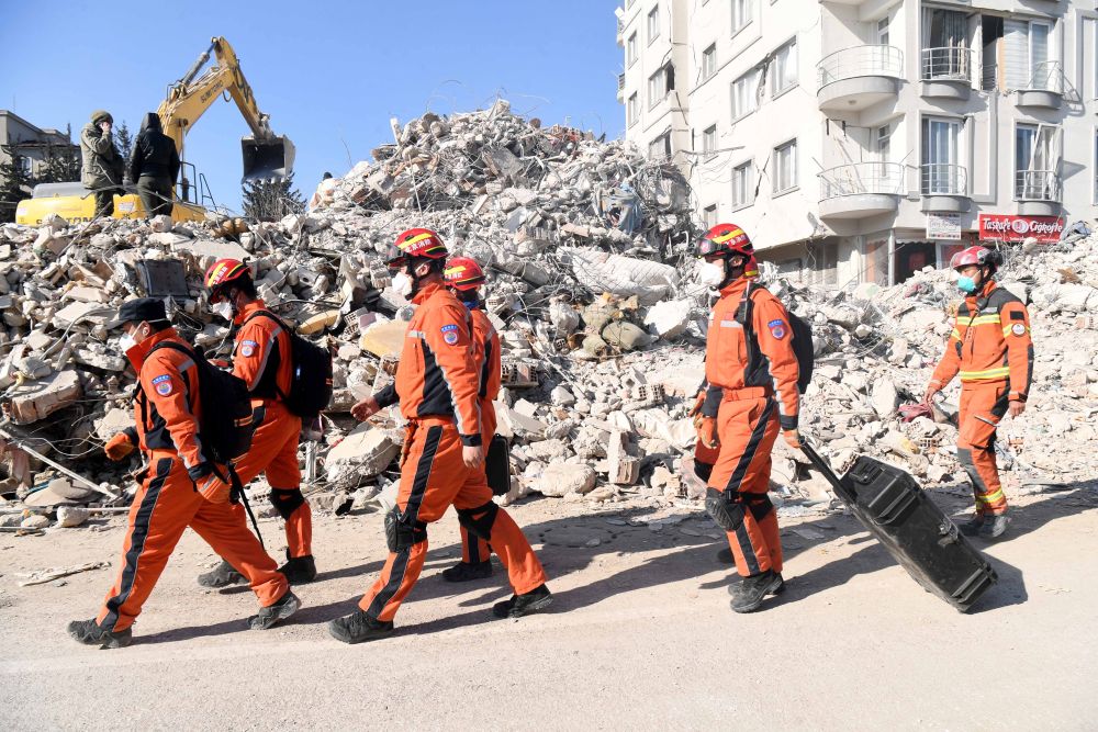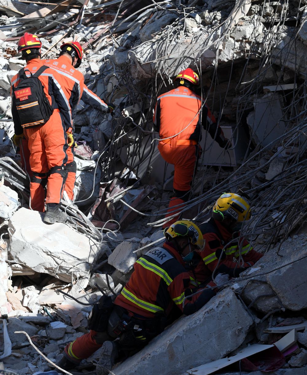 ↑2月14日,中国救援队与中国香港特区救援队联合编组在土耳其哈塔伊省安塔基亚市开展救援工作。