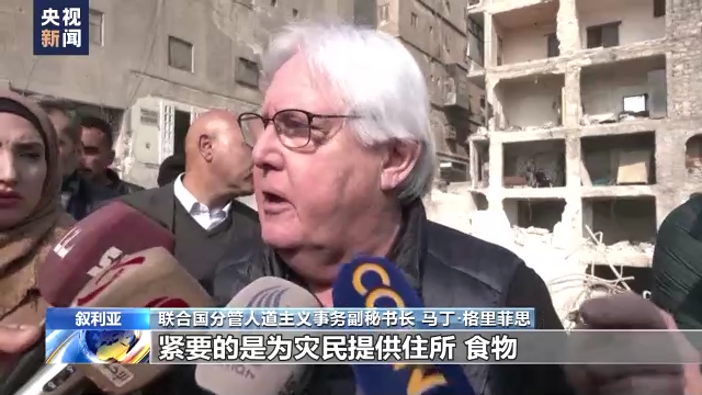格里菲思13日在阿勒颇市视察地震灾情时说,联合国方面尝试把救援物资从政府控制的地区运送至反对派控制的地区,但救援物资很少能“穿越前线”。他呼吁打通叙利亚国内的救援物资通道。