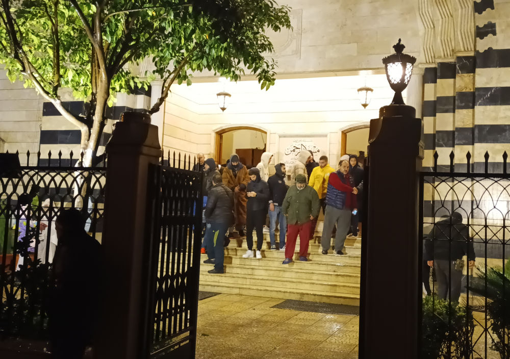 ↑在黎巴嫩的黎波里,地震发生后人们疏散到室外。新华社发(哈利德摄)