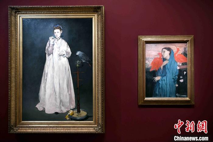 图为马奈与德加分别创作的两幅女性肖像画在并列展出。 中新社记者 李洋 摄