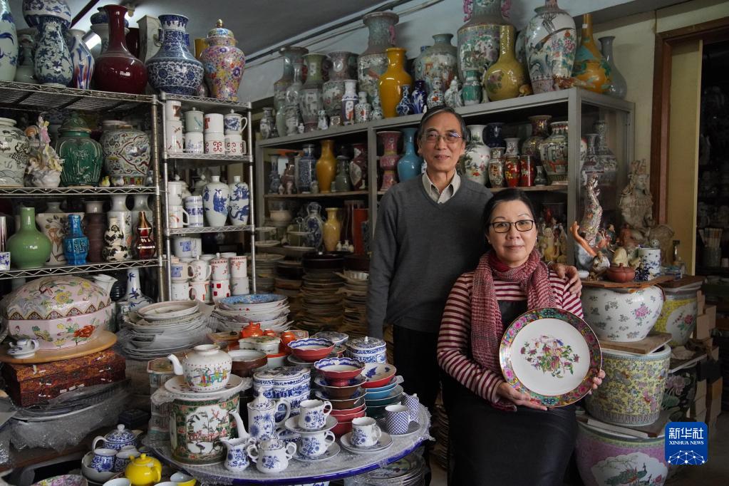 2月24日,粤东磁厂第三代传人曹志雄与太太在工场合影。新华社记者 吕小炜 摄