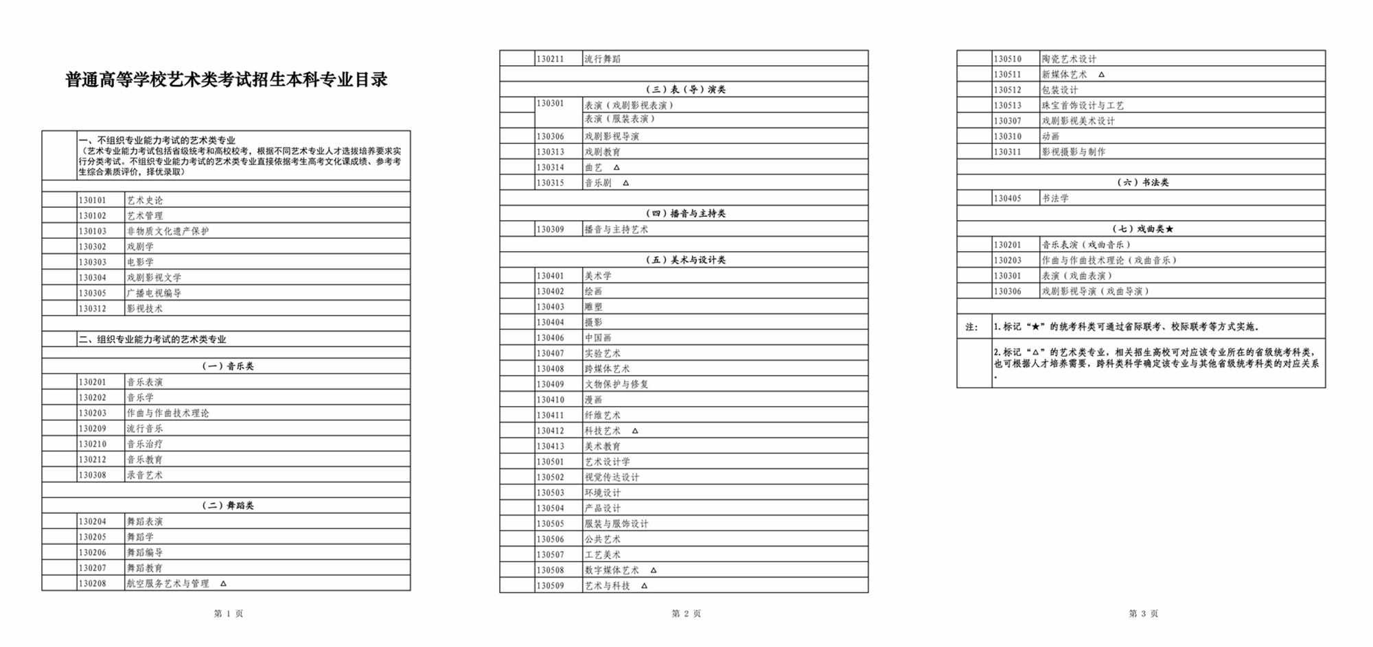 从目前来看,各地艺术类专业省级统考设音乐类、舞蹈类、表(导)演类、播音与主持类、美术与设计类、书法类等6个科类。各地均出台文件,对各科类考试科目、分值、内容、形式、要求和考试组织实施各环节等作出具体规定。