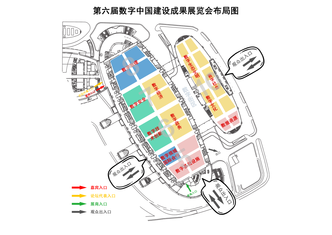 福州海峡国际会展中心5、6、7、8、10号馆。展馆入口及内容版块布局可参考下图: