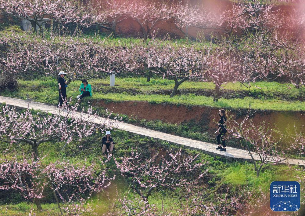 4月2日,游人在贵州省铜仁市玉屏侗族自治县皂角坪街道瓮阳村桃园基地游览。