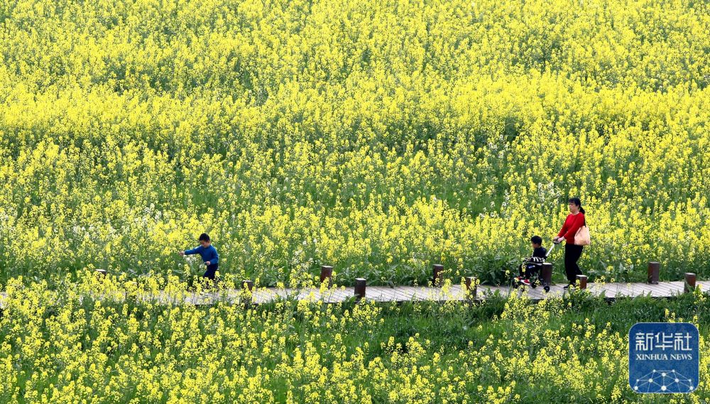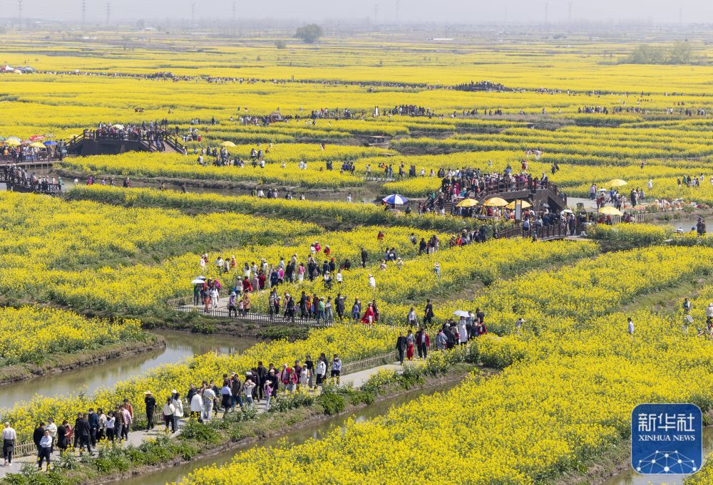 4月2日,游客在江苏省兴化市千垛景区踏青赏花。新华社发(顾继红摄)