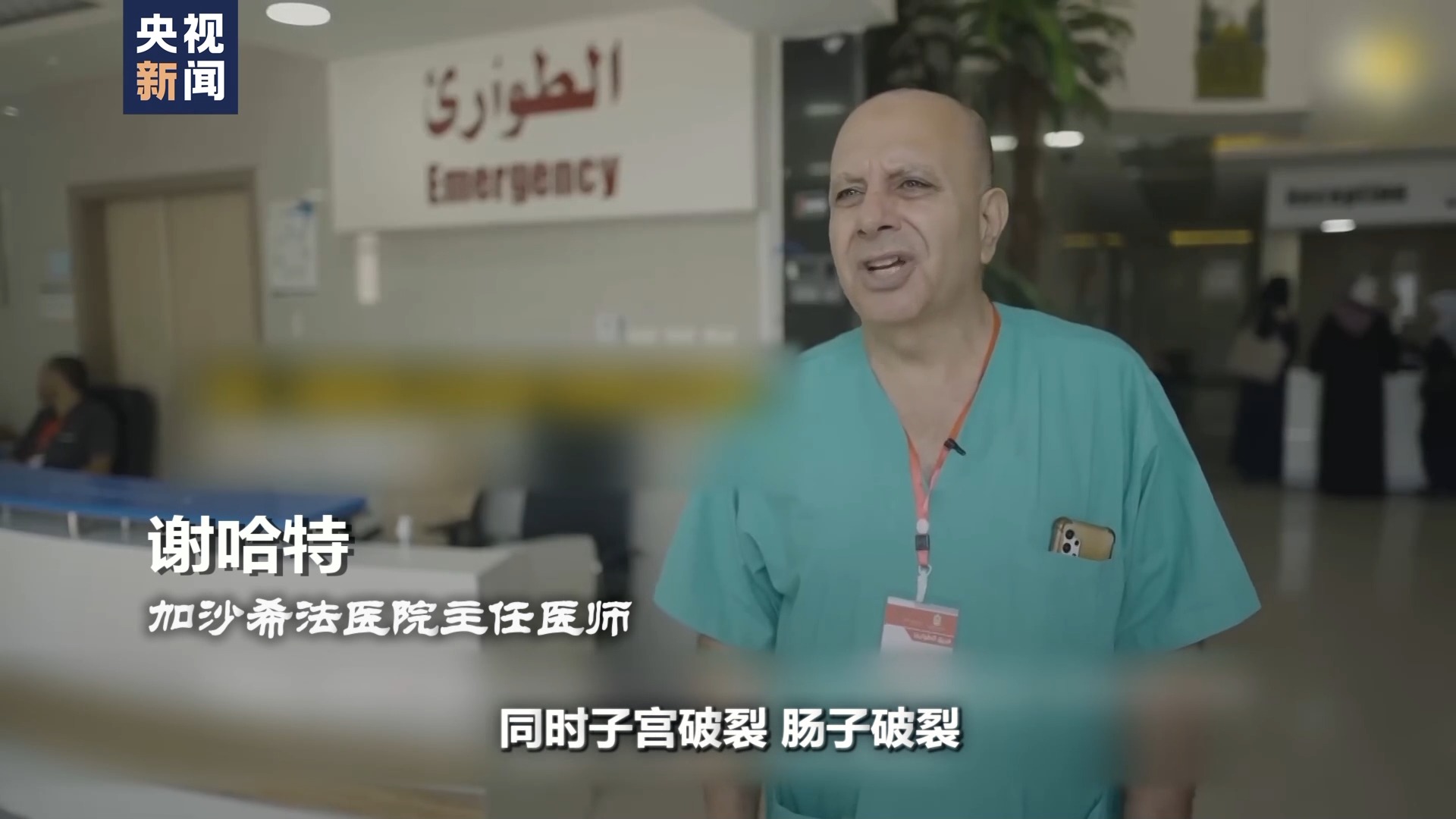 加沙希法医院主任医师 谢哈特:她们怀着孕,同时子宫破裂、肠子破裂,这些伤口是猛烈轰炸造成的。