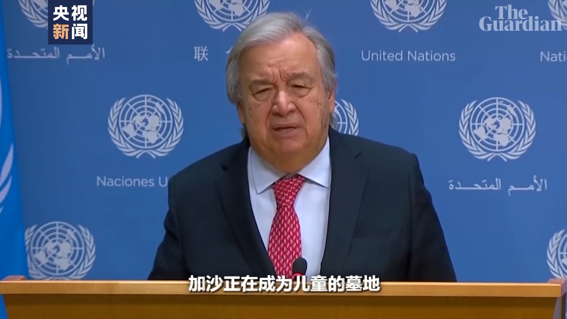 联合国秘书长 古特雷斯:新闻界的女士们、先生们,加沙正在成为儿童的墓地。据报道,每天都有成百上千的男孩和女孩被杀或受伤。
