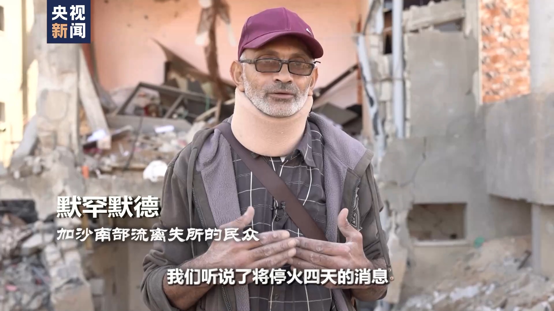 加沙南部流离失所的民众 穆罕默德:我们听说了将停火四天的消息,我们很高兴,当然很高兴。但愿上天保佑实现永久休战,而不仅仅是4天。因为人们遭受了太多苦难,并且仍在遭受苦难。