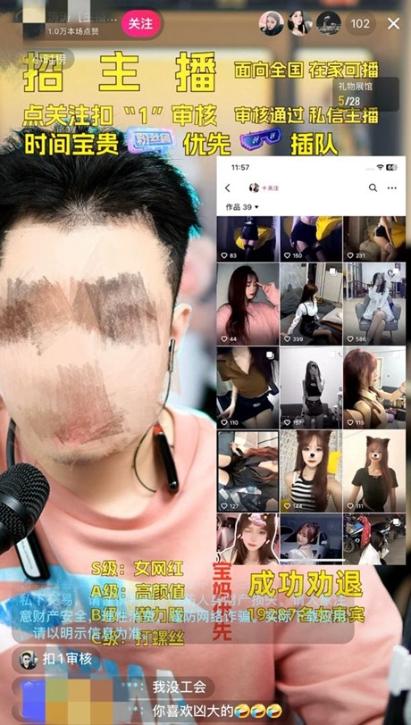1月10日,一名男博主以“女网红高颜值”为噱头在某短视频平台直播间招募年轻女博主。
