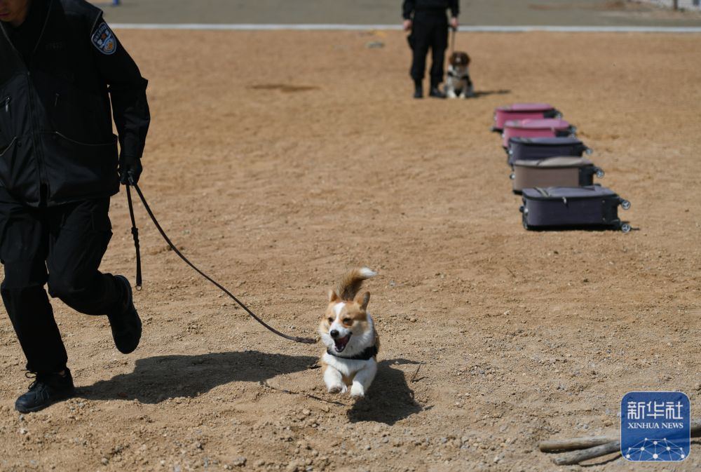 ↑4月7日,完成气味搜索训练的“福仔”在训练场欢快地奔跑。
