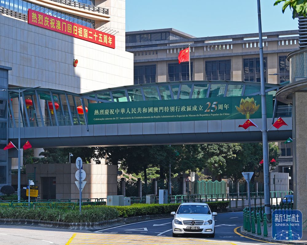 回归祖国25周年前夕,澳门街头装扮一新,洋溢着喜庆气氛。