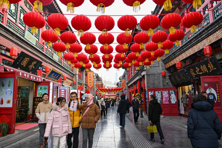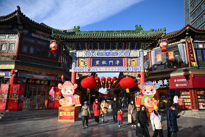 2025年1月28日,游客在天津古文化街游览。新华社记者 孙凡越 摄