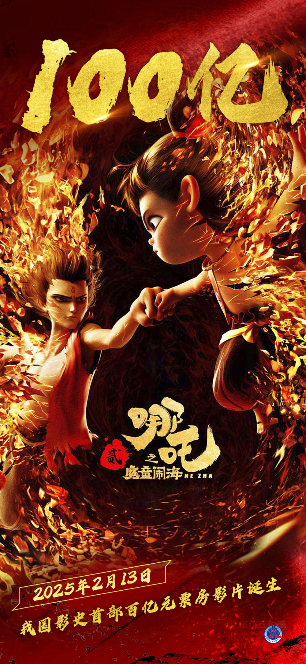 电影《哪吒之魔童闹海》票房(含预售)达100亿元。