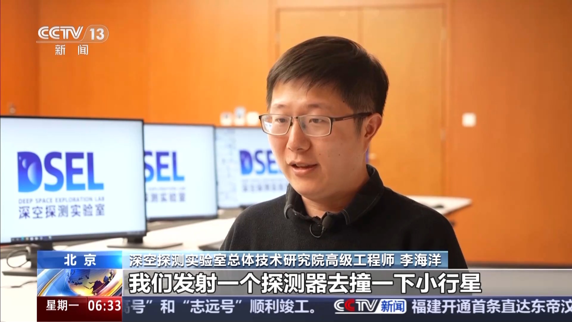 深空探测实验室总体技术研究院高级工程师 李海洋:我们想要改变小行星的轨迹,对它撞击的相对速度是一定要很快的,但同时小行星又比较小,一个高的相对速度撞一个小的目标是一个技术上很难的点。