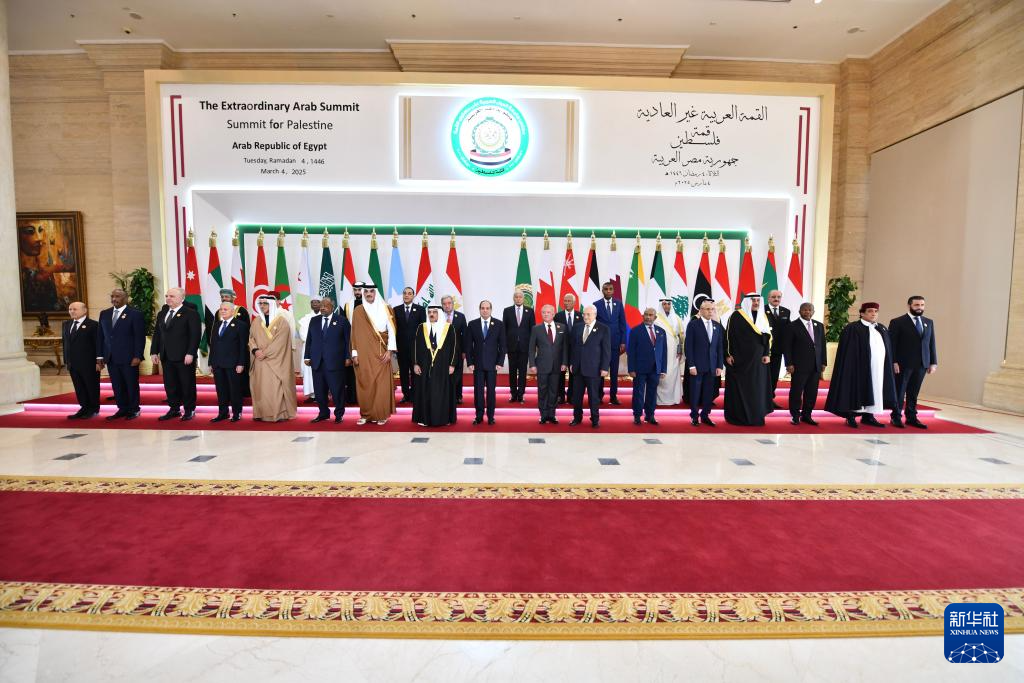 3月4日,与会领导人在埃及新行政首都出席阿拉伯国家紧急峰会前合影。新华社发(埃及总统府供图)