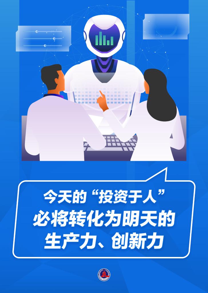 让人民生活幸福是“国之大者”。今天的“投资于人”,必将转化为明天的生产力、创新力,带来全体人民的幸福生活。